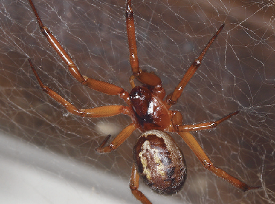The false black widow, Steatoda grossa, is smaller than the true widow and the females do not have red coloration on their belly. They’re more likely to live indoors, but their bites are relatively mild.